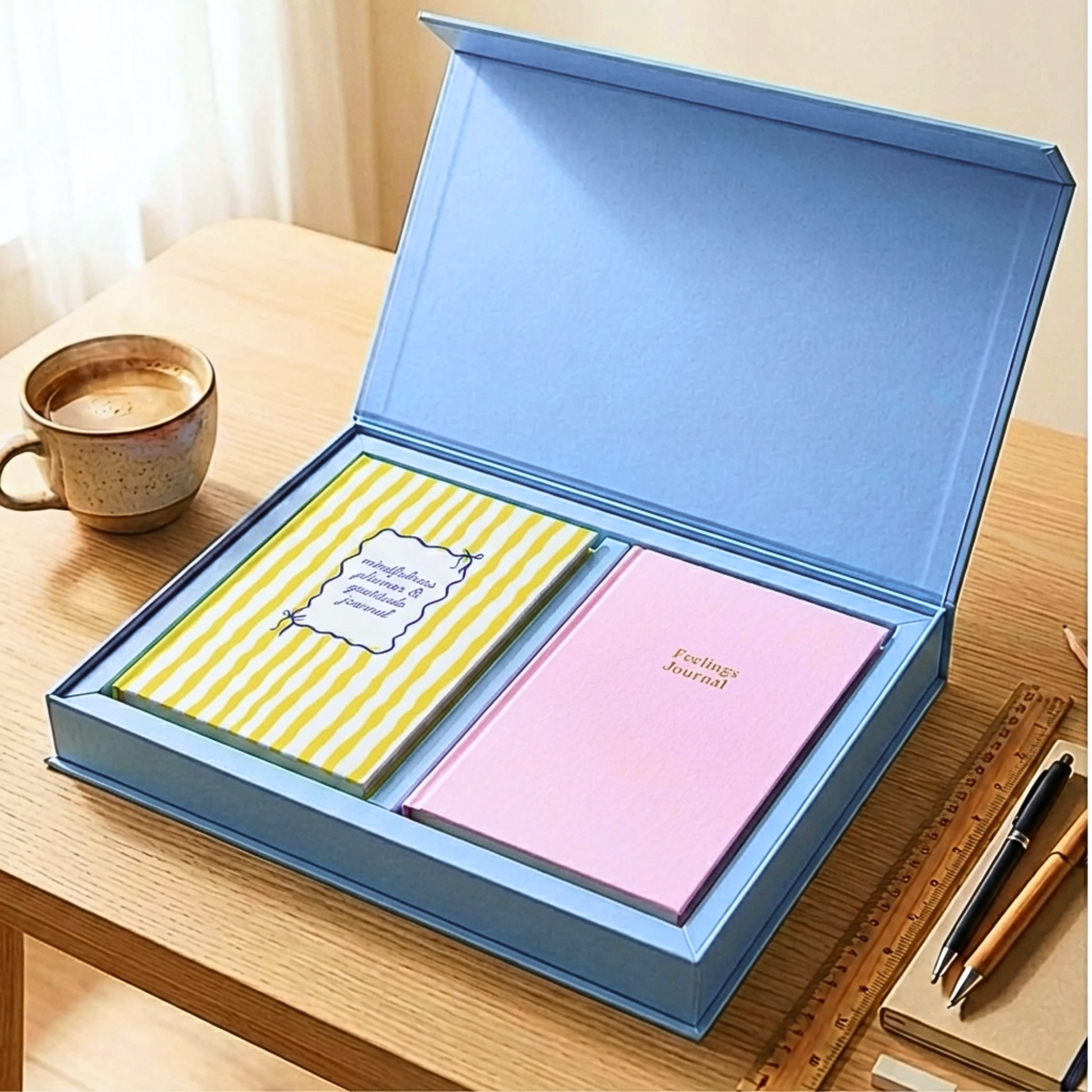 The Planner Gift Box Set is thoughtfully designed for those who love gifting with intention. It comes with Feelings Journal to reflect, process feelings, and build emotional clarity paired with the Daily Planner to set priorities, manage tasks, and create a calm, focused routine.